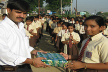 Books, copies etc. are distributed to poor students of slum areas.